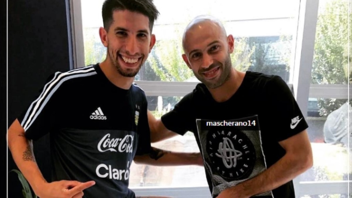 Aprovechando su estadía con el seleccionado argentino, Nicolás -utilero del equipo- se sacó una foto con Javier Mascherano, su máximo ídolo, posando junto con un llamativo tatuaje que lleva en la pierna izquierda en homenaje al Jefecito.