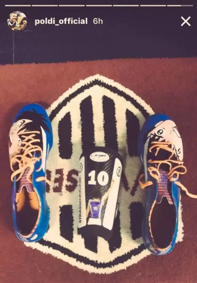 Con Oliver Atom en su pie izquierdo y Steve Hyuga en su botín derecho, el delantero polaco alemán rindió homenaje a dos de sus personajes favoritos del programa que supo hacer historia no solamente en Japón sino también en gran parte del hemisferio occidental.