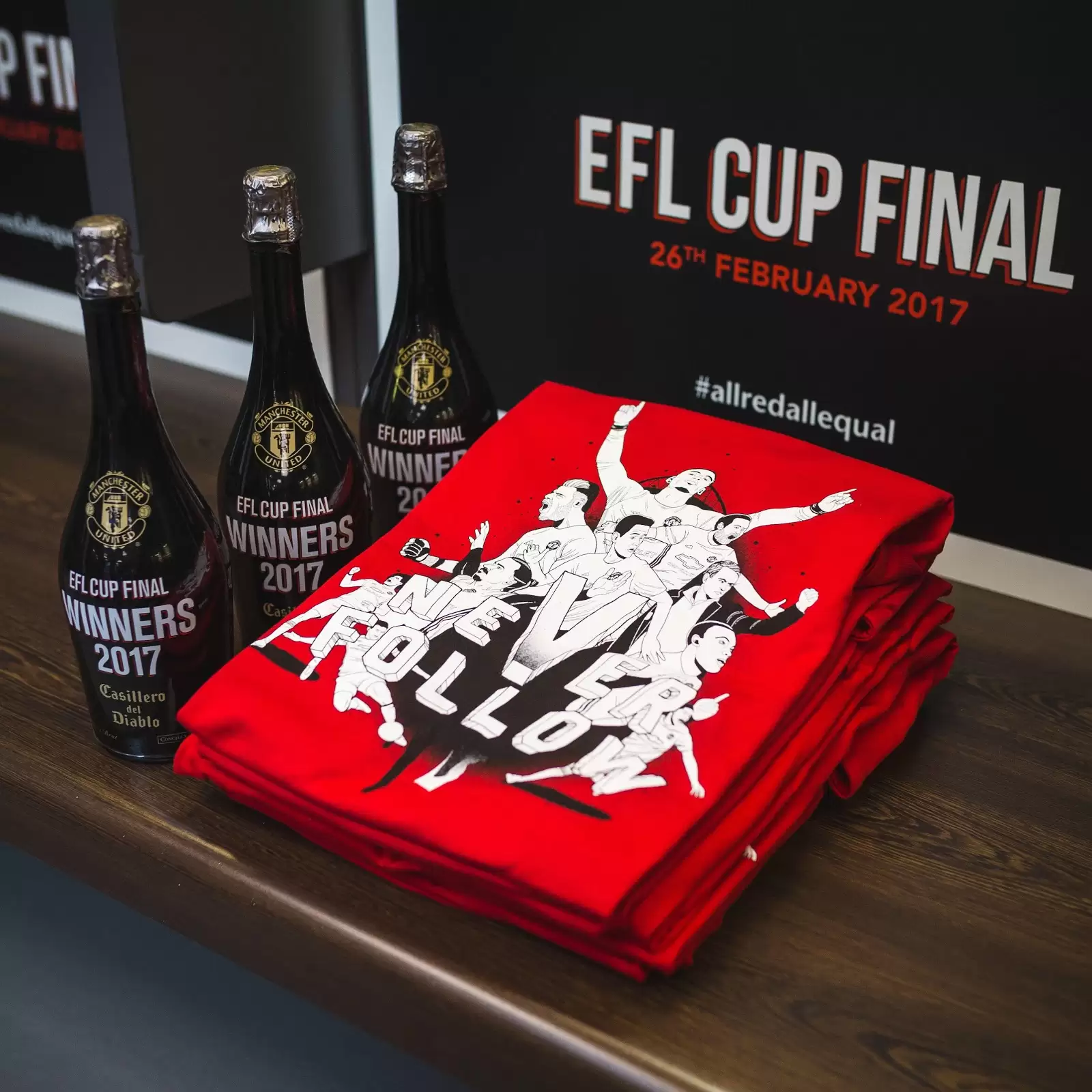 Tal es así que, botellas con el logo del equipo junto con la leyenda EFL Cup Final Winners 2017, acompañaron la nueva línea de camisetas adidas bajo el nombre de Never Follow, que acompañaron la gala posterior en la piel de cada protagonista.