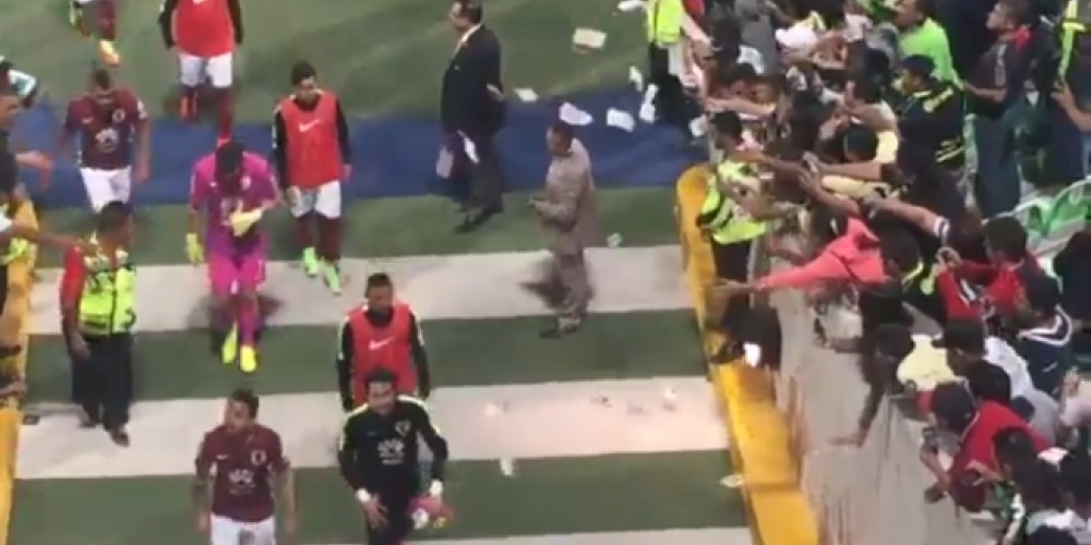 Aficionados de Santos lanzan billetes (falsos) al arquero Agustin Marchesín. pic.twitter.com/HvKZMyQc3g