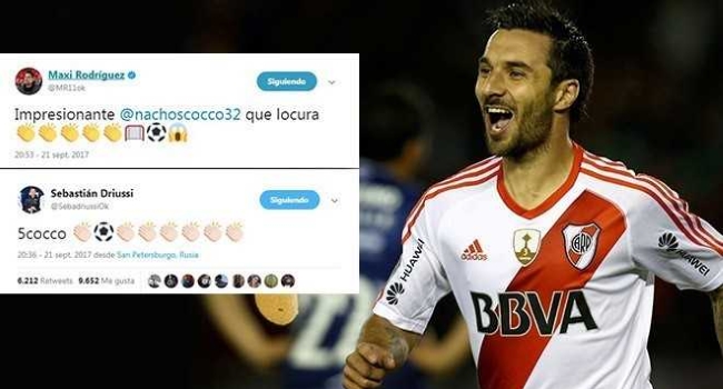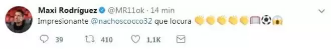 Otro de los que no se quedó sin celebrarlo, aunque su festejo se enfocó más hacia su ex compañero en Newell’s, Ignacio Scocco; fue Maxi Rodríguez quien empleó su cuenta personal de Twitter para expresar su asombro.