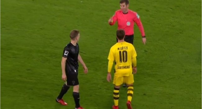 Visiblemente molesto por la situación, Götze llegó incluso a empujar al ex Estudiantes de La Plata con el fin de sacárselo de encima.