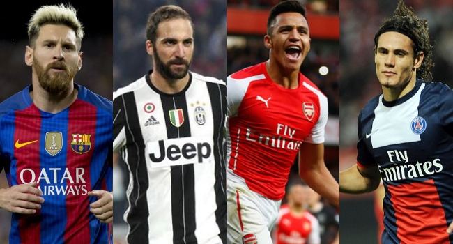 Lionel Messi, Gonzalo Higuain, Alexis Sánchez y Edinson Cavani son los máximos artilleros hasta el momento de La Liga, la Serie A, la Premier League y la Ligue 1.