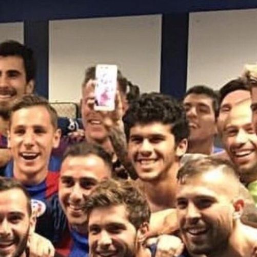 A priori, es una simple foto post partido festejando el triunfo ante el clásico rival. Sin embargo, al mirar con detalle la mano de Lionel Messi, se ve un Smartphone y allí el hecho más destacado: Neymar está junto a sus compañeros.