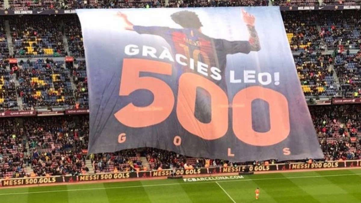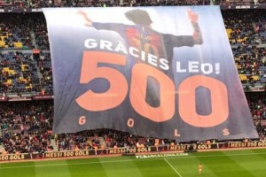 Previo al partido correspondiente a LaLiga española entre el FC Barcelona y el Osasuna, el conjunto local preparó un emotivo homenaje para el argentino por su cifra de 500 goles con la camiseta del club, mediante un mosaico que cubrió gran parte de la platea ‘Categoría 2’ del estadio.