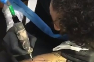 El brasileño se sumó a una moda de cambio de roles y tatuó su firma en el brazo de su habitual tatuador.