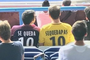 Tras ser presentado en el estadio Parque de los Príncipes, las camisetas del jugador brasileño se agotaron. Varios fanáticos decidieron estampar la frase “se queda” acompañada del 10, número que Javier Pastore le cedió a Neymar previamente.