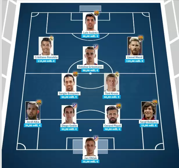 Por parte del conjunto Merengue, se destaca la ausencia de Gareth Bale, al tener colegas de igual o mayor cotización en su puesto, mientras que por el lado del Barca, los 100 millones de euros bajo los cuales está cotizado Neymar Jr. tampoco bastaron para meterlo dentro del once.