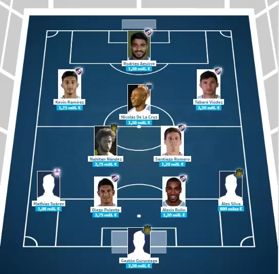 El Bolso cuenta con Alexis Rolín, Diego Polenta, Santiago Romero, Tabaré Viudéz, Kevin Ramírez y Rodrigo Aguirre en la formación que, en su totalidad, alcanza un valor de mercado de 19.2 millones de euros.