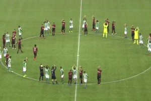 El encuentro se suspendió con los hinchas ya ubicados en las tribunas, algo que obligó a los futbolistas a vestirse y salir a saludar de todas formas.