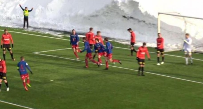 Tras una semana de intensas nevadas, funcionarios del Tromsdalen noruego se vieron forzados a despejar la cancha de su club para que pueda medirse al Asane, formando una pared de nieve de 10 metros detrás de uno de los arcos.