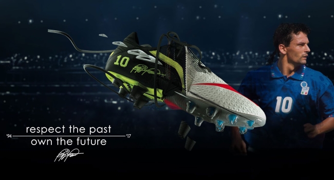 Dentro de sus variantes, uno de los botines en específico llevan la firma y el tradicional número 10 del ex futbolista, además de los colores de la bandera italiana y el año en cual la azzurra estuvo a un penal de coronarse campeón del Mundo (1994).