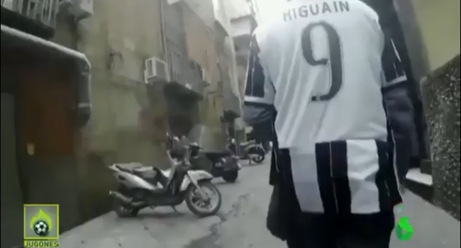 Como parte de una idea que nació del programa de televisión español Jugones, un actor de su país decidió recorrer las calles de Nápoles con una camiseta de su clásico rival, la Juventus FC, con el detalle de tener el nombre y número de Gonzalo Higuaín en su espalda.