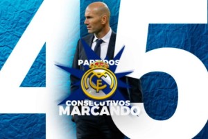 Si bien aún está lejos la marca de 63 partidos seguidos marcando goles que posee el Bayern Munich (2012-2014), el Real Madrid celebra su marca de 45 partidos, algo que le permitió superar la marca del FC Barcelona en la temporada 1943-44.