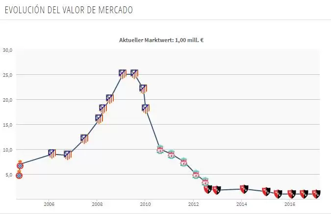 Un gran desempeño en el club catalán lo llevó a cotizar en cinco millones de euros para el 2004, antes de pasar al Atlético de Madrid, en donde el jugador conquistó su pico más alto (en cotización) y rozó los 30 millones de dólares a mediados del 2009.