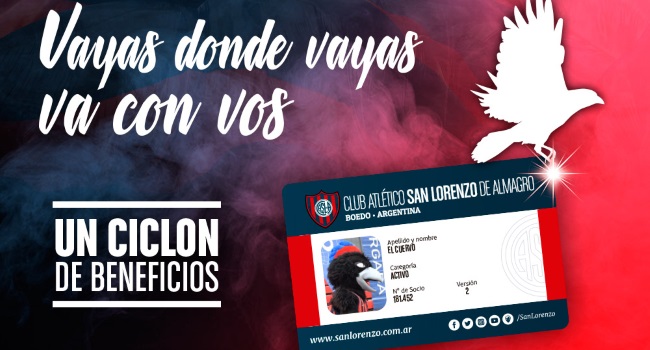 Un club, muchos beneficios. Un carnet, grandes descuentos. San Lorenzo, el mejor socio.