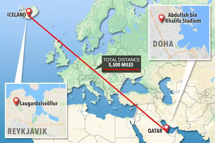 Resulta que el juego se desarrolló en Doha, Qatar y que el enviado especial había volado hasta Reykjavik, capital y sede habitual de encuentros islandeses.