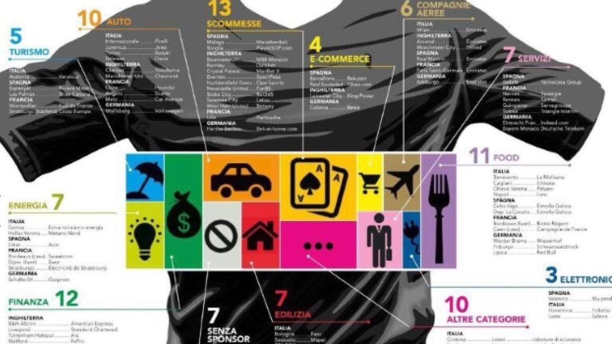Con cada liga nacional en marcha el diario italiano La Gazzetta dello Sport reveló esta semana un gráfico con las 13 principales industrias del mercado y su alcance a nivel publicitario para con los clubes más reconocidos del Viejo Continente.