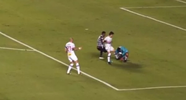 Y es que, tras una larga pelota buscando a Jo –delantero del Corinthians- Rodrigo Caio pisó sin querer a su arquero tratando de cubrir el balón, originando la mala amonestación del atacante, en un error arbitral que pudo ser corregido a tiempo, gracias al zaguero tricolor.