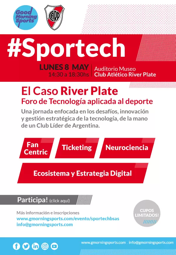 Good Morning Sports organiza junto con el Club Atlético River Plate #Sportech, el Foro de Tecnología Aplicada al Deporte, donde se presentará el Caso River Plate.