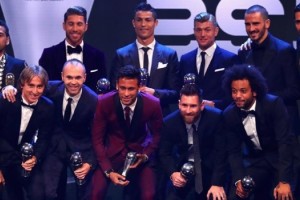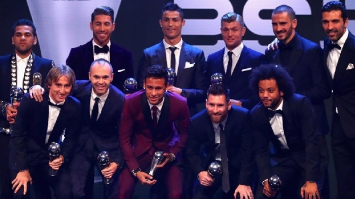 Luego de una breve introducción y varios de los primeros reconocimientos, la FIFA hizo pasar adelante del escenario a los once jugadores miembros del “equipo ideal” correspondiente a la temporada 2016/17.
