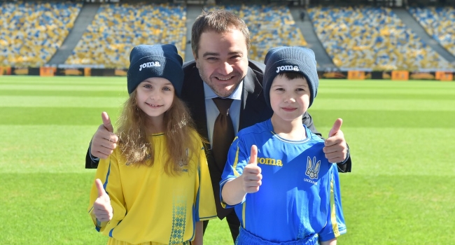 La presentación del nuevo uniforme que conserva los colores de la bandera ucraniana, contó con la participación de varios niños quienes -previa autorización de sus padres- posaron con los nuevos templates que lanzó la compañía española de cara a la próxima jornada de Eliminatorias para el Mundial de Rusia 2018.