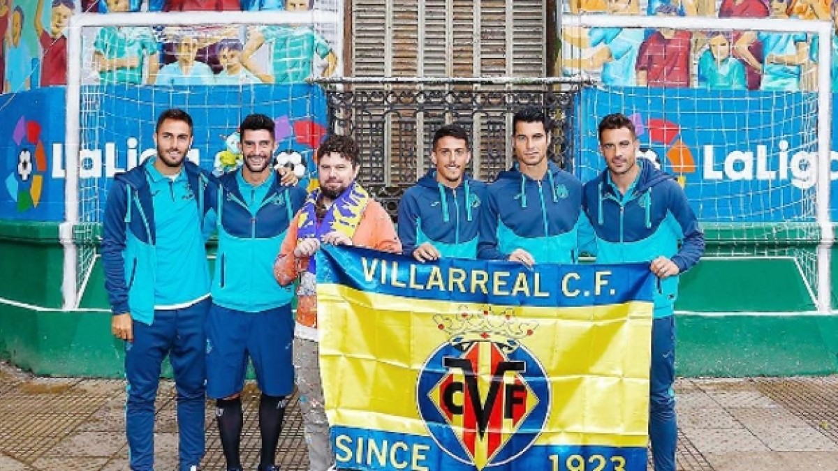 El Villarreal presentó un mural urbano finalizado por sus jugadores en Buenos Aires
