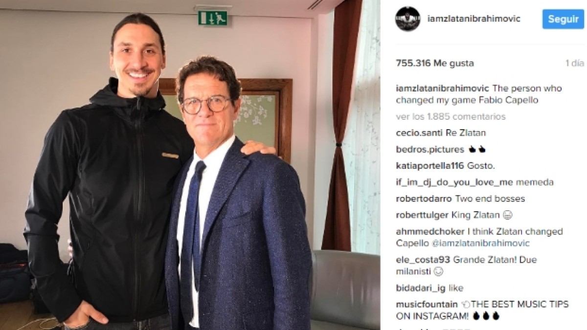 Según reza el pie de foto de una de las últimas publicaciones del sueco en su cuenta personal de Instagram, el ex seleccionador de Rusia Fabio Capello, fue el entrenador que logró ‘modificar su juego’ durante el paso de ambos por la Juventus de Turín en el 2004.