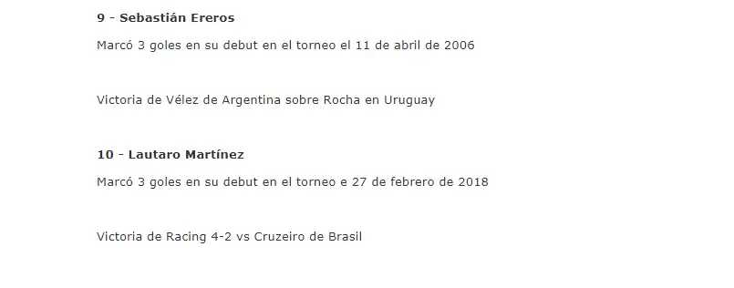 De acuerdo con el último informe del sitio especializado en estadísticas de fútbol, Goleamos, Lautaro Martínez se sumó a un selecto grupo de otros nueve jugadores que al debutar en el máximo certamen continental anotaron tres goles para su equipo.