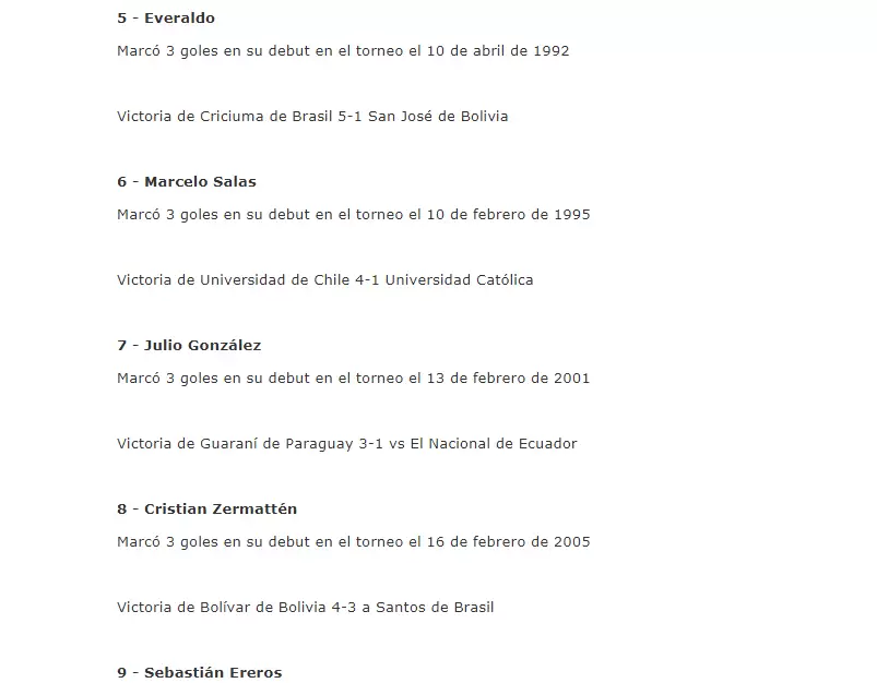 Ejemplos como el del máximo goleador histórico del certamen, el ecuatoriano Alberto Spencer, el delantero chileno de gran paso por River Plate, Marcelo Salas y el ex delantero de Vélez Sarsfield, Sebastián Ereros simplemente nutren una lista que para muchos destaca el olfato goleador de pocos futbolistas.