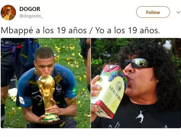 La consagración de Francia fue seguida de cerca por las redes sociales donde también se compartieron miles de “Memes” con Mbappé como protagonista. ¿Cuál fue el motivo? Su corta edad y los logros conseguidos por el jugador durante este Mundial.