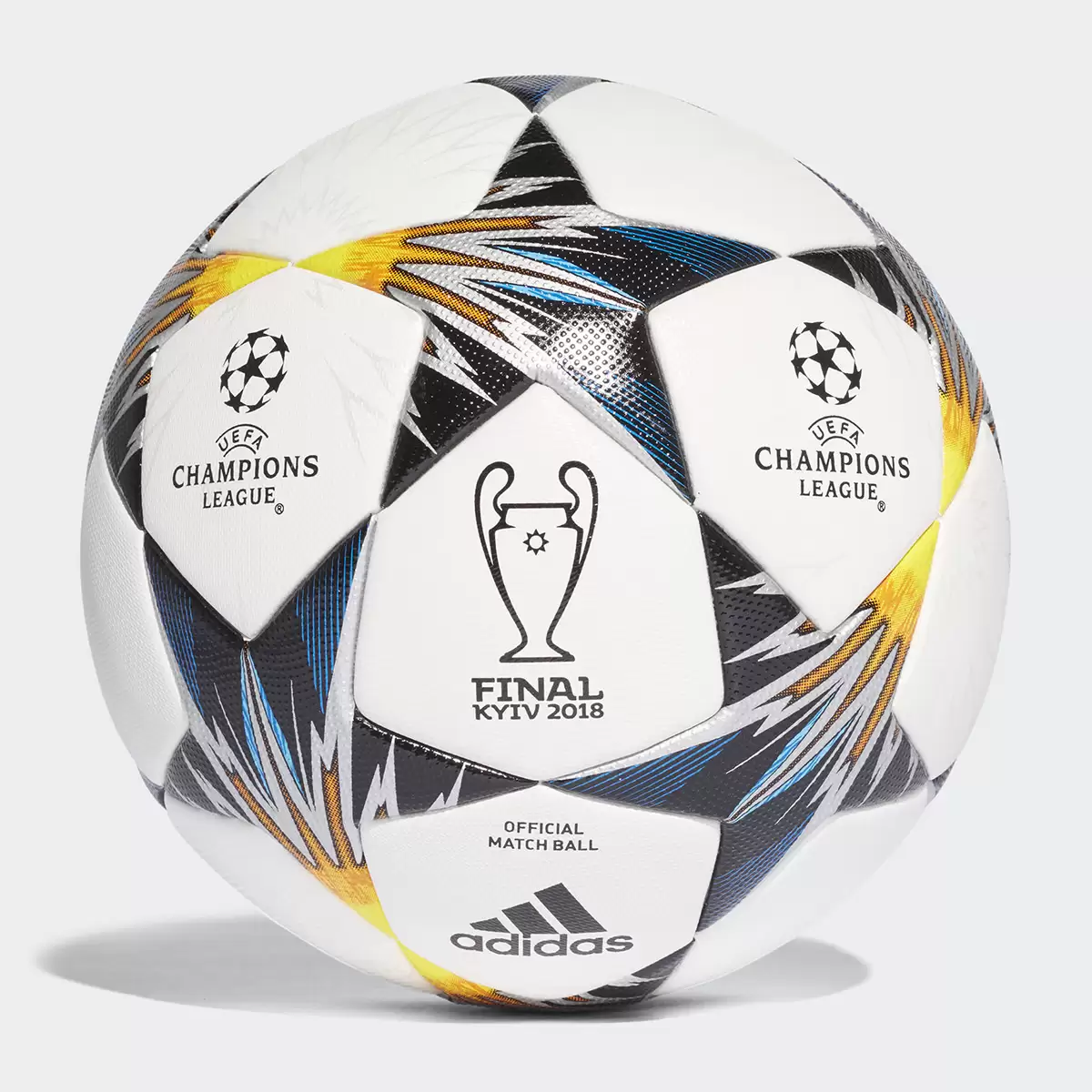 Como es costumbre la UEFA y adidas diseñan una pelota diferente a la de la fase de grupos, en esta oportunidad el nuevo balón se llamará adidas UCL Finale Kiev 2018. El diseño está inspirado en la ciudad de Ucrania que recibirá la Final del torneo europeo, ya que presenta los colores amarillo y azul, que reflejan los colores de la bandera.
