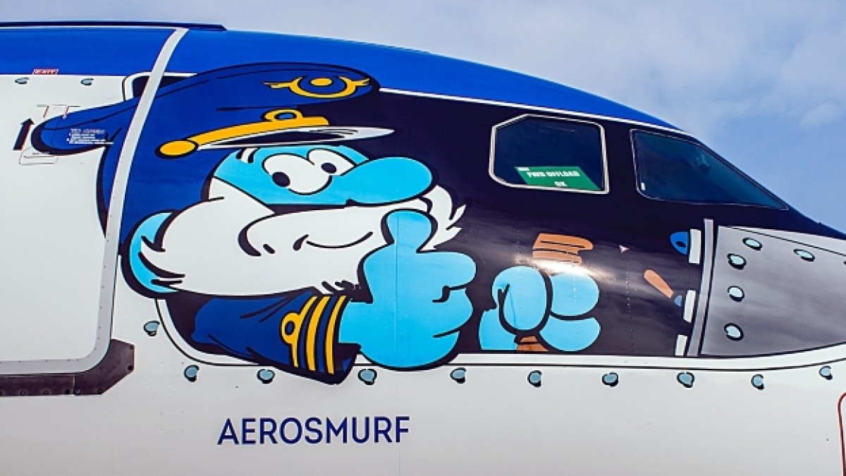 Se trata del Aerosmurf, o mejor conocido como el “avión de los Pitufos”, un Airbus A320 que no solamente tiene ploteado su exterior con los personajes de una de las series más tradicionales del país, sino que también incorpora único detalles en su interior en alusión a la leyenda.