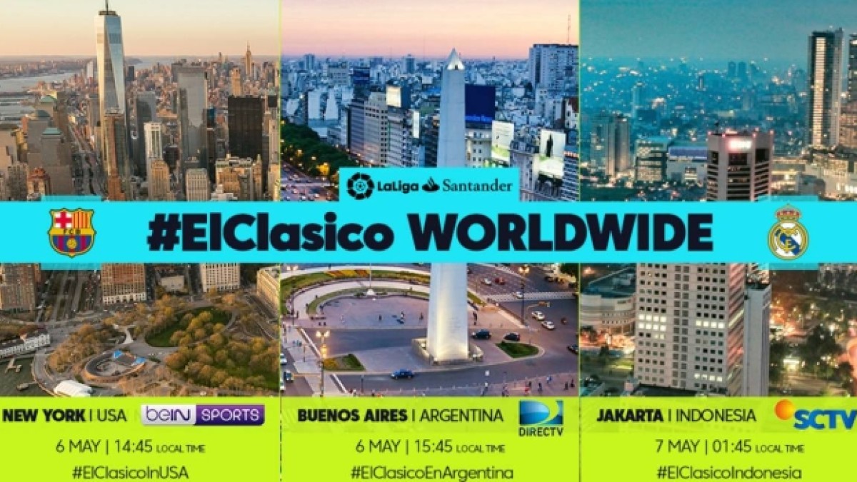 En una propuesta que involucrará pantallas gigantes, food trucks, música en vivo y la presencia de embajadores que pasaron alguna vez por alguno de los dos equipos, el campeonato español dirá presente en ciudades de la talla de: Nueva York (Estados Unidos), Buenos Aires (Argentina), Bogotá (Colombia), Santiago (Chile), Bruselas (Bélgica), Luxemburgo (Luxemburgo), Bratislava (Eslovaquia), Copenhague (Dinamarca), Nueva Dehli (India), Yakarta (Indonesia) y más bajo la misma temática.