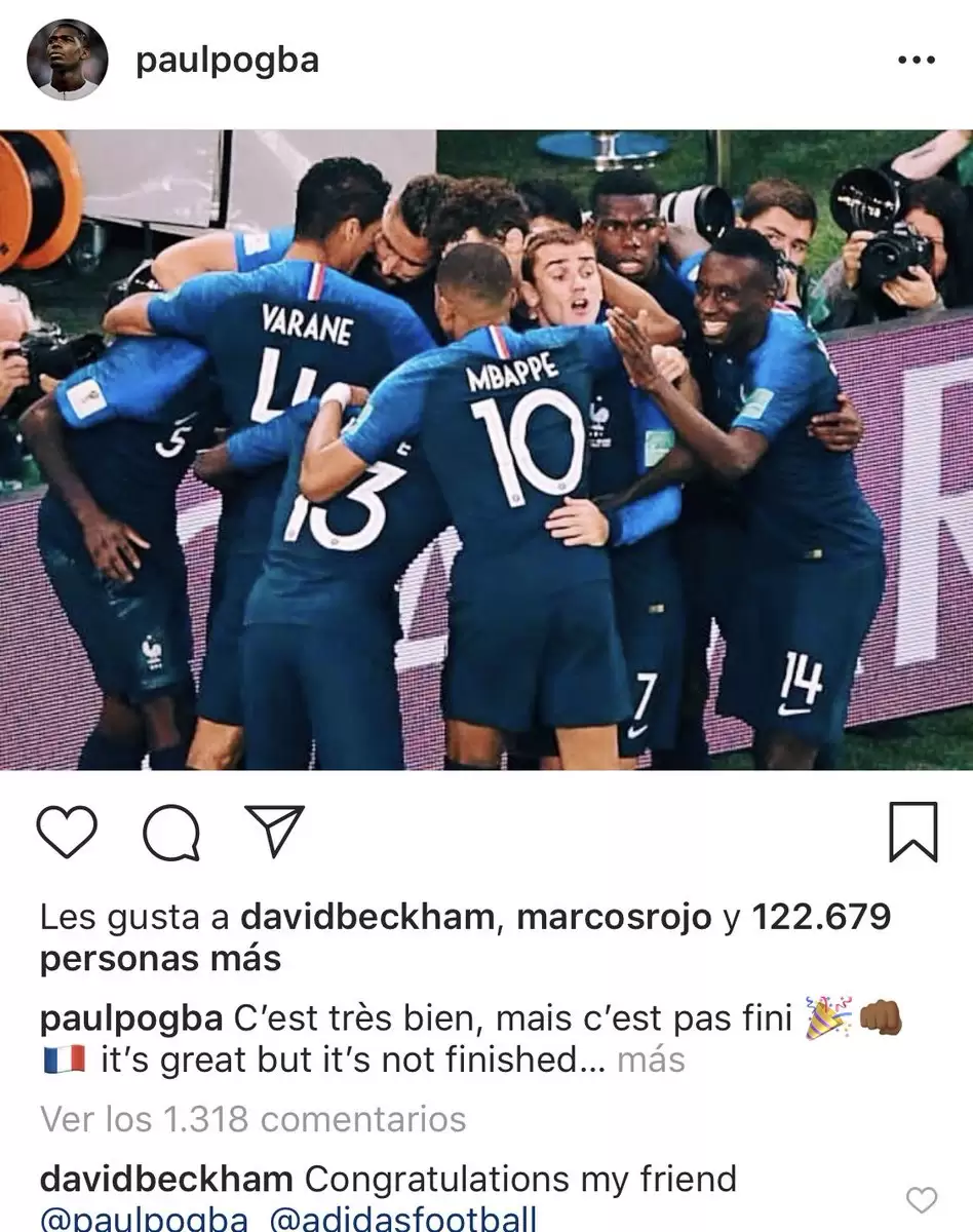 En este contexto, fue el mediocampista del Manchester United, Paul Pogba quien compartió una foto apenas un par de minutos después de finalizado el encuentro y el ex astro inglés del mismo club, David Beckham, comentó su posteo en lo que para muchos expertos es un perfecto ejemplo de “ambush marketing”.