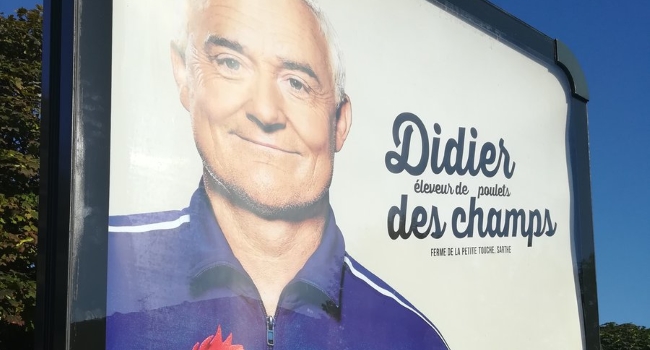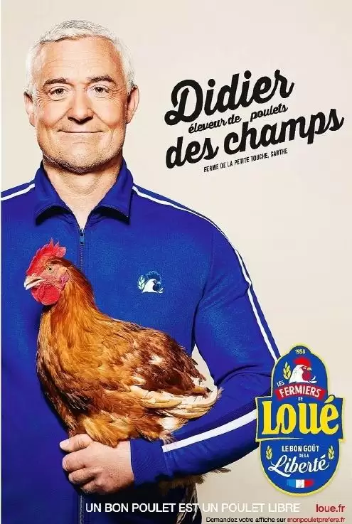 Apelando a un doble del ex jugador y actual seleccionador de Les Bleus, la marca presentó al criador “Didier des champs”, con un notorio parecido físico y un buzo similar al que utiliza el personaje a quien se alude durante el desempeño de sus funciones como entrenador.