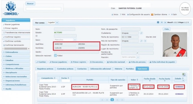 Resulta que si bien Sánchez fue expulsado ante Huracán por las semifinales de la Sudamericana 2015 y que la sanción de su momento fue de tres fechas (de las cuales el jugador cumplió tan solo una), la Confederación Sudamericana de Fútbol habría otorgado una especie de amnistía total en el año 2016 con motivo de festejar su Centenario.