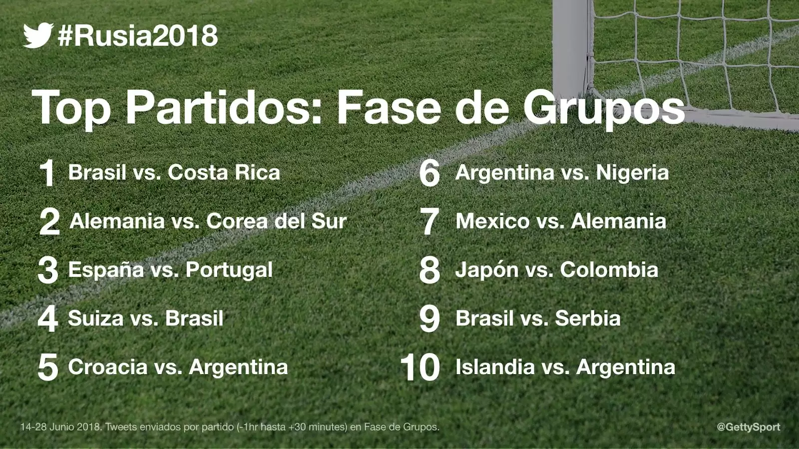 El encuentro entre Brasil (@CBF_Futebol) y Costa Rica registró la mayor cantidad de conversaciones de Twitter durante la primera etapa de la Copa del Mundo. Estos son los 10 partidos más Twitteados: