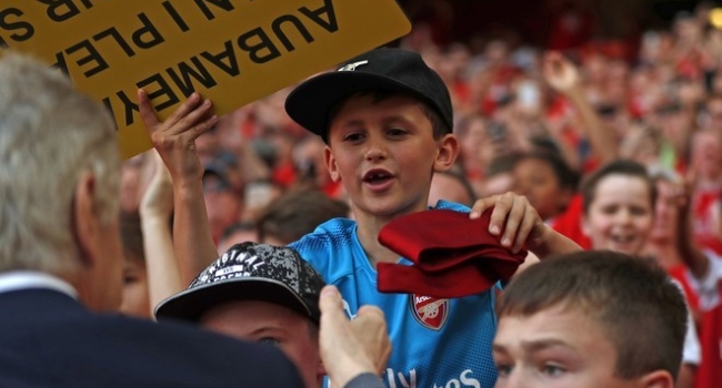Emocionado por la situación y sin pensarlo dos veces, Arsene se acercó hasta dicho sector del campo del juego y le obsequió la corbata con la cual supo inmortalizar su imagen al frente de los Gunners al niño, quien inmediatamente se la colgó del cuello para lucir su regalo orgullosamente.