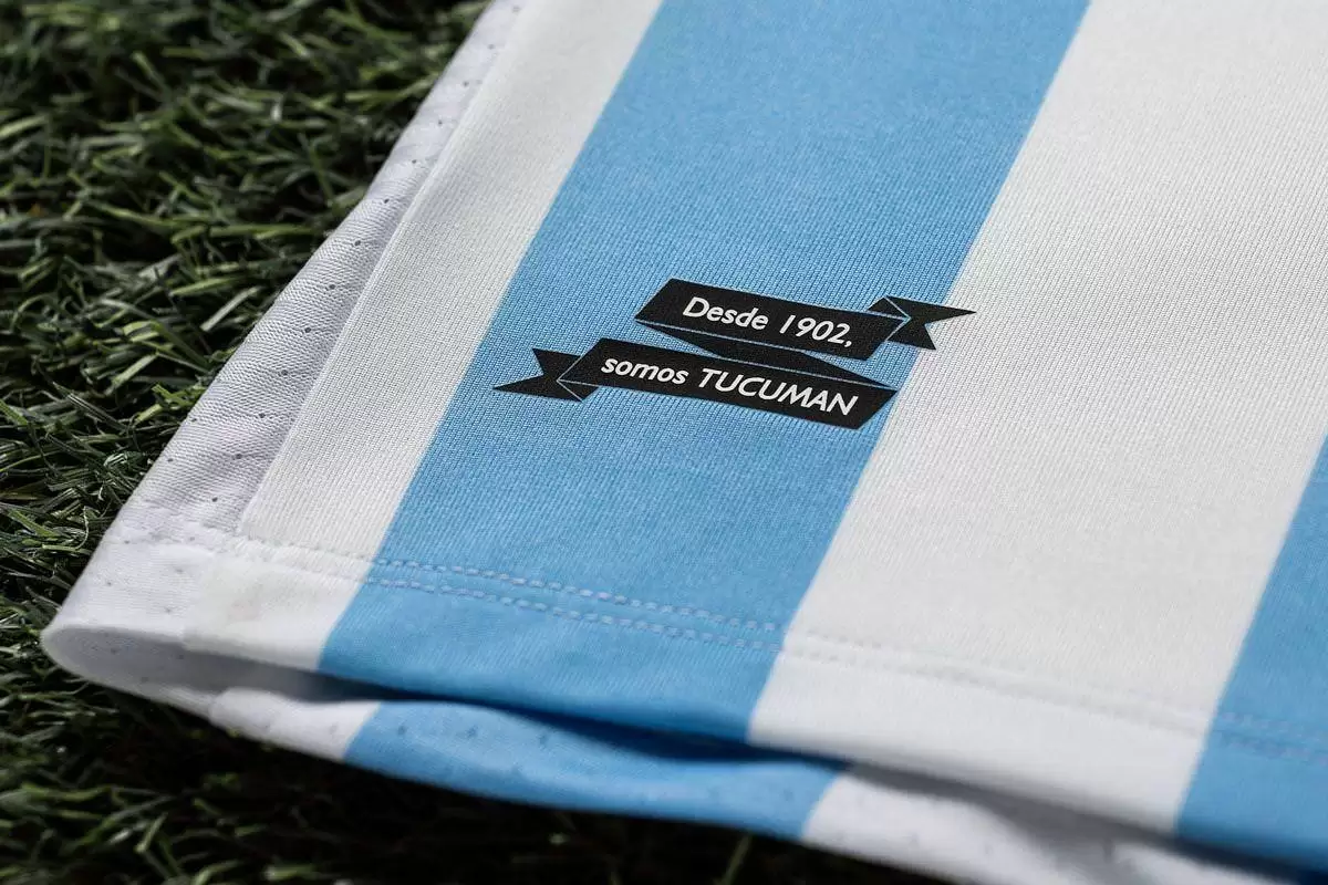 En el borde inferior izquierdo se encuentra la etiqueta termoadhesiva de autenticidad, y en el derecho, la leyenda especial que Umbro agrega a todos sus modelos. En este caso, el transfer reza “Desde 1.902, somos TUCUMÁN”.