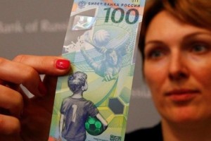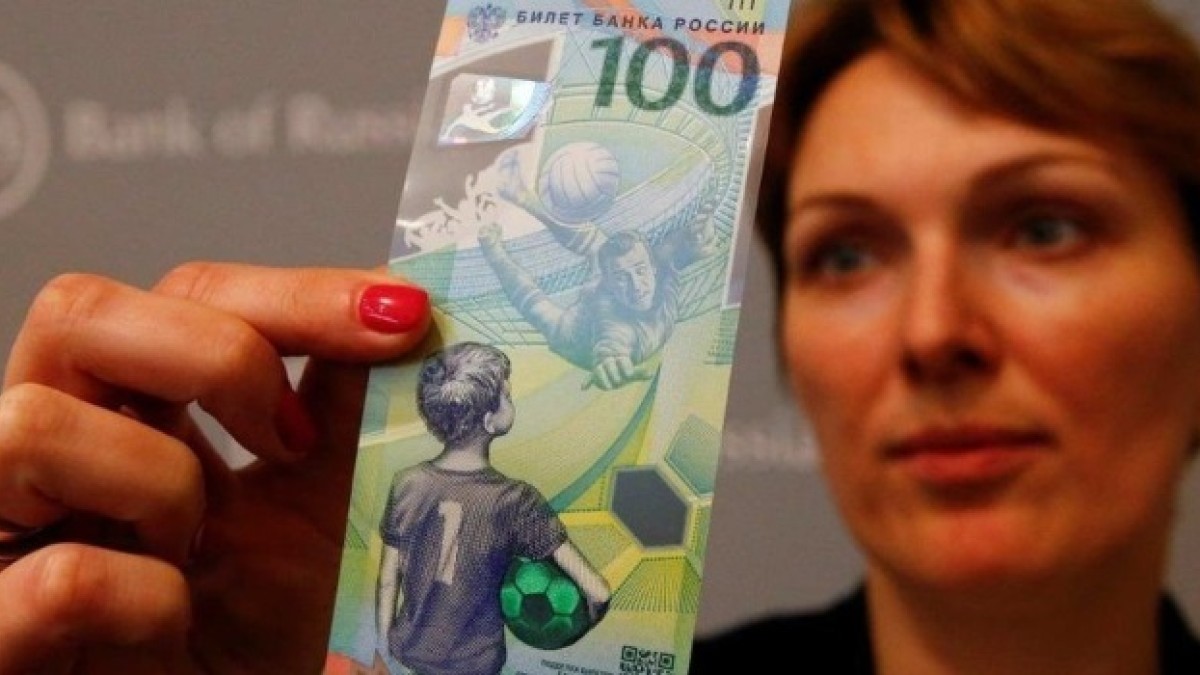 En esta oportunidad, el Banco Central de Rusia creó un billete de 100 rublos, que al día de hoy equivalen a casi 40 pesos argentinos, en conmemoración de la Copa del Mundo de la FIFA 2018 que comenzará el próximo 14 de junio cuando la selección local enfrente a Arabia Saudita en el estadio Olímpico Luzhnikí.
