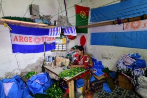 “En 2014, vendí más de 80.000 banderas. La mayoría de ellas se vendieron durante la Copa del Mundo o sólo unos días antes del saque inicial. Ahora estoy vendiendo 2.000/2.500 banderas grandes y 10.000 banderines por día y la Copa del Mundo está a unas semanas de distancia”, Selim Howlader, propietario de una de las fábricas más reconocidas del país y también una de las que más factura a través del evento.