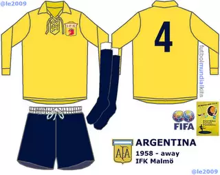 *1958: Color amarillo: (Argentina vistió la equipación del IFK Malmö en Suecia por la similitud que tenía su uniforme con el de Alemania).