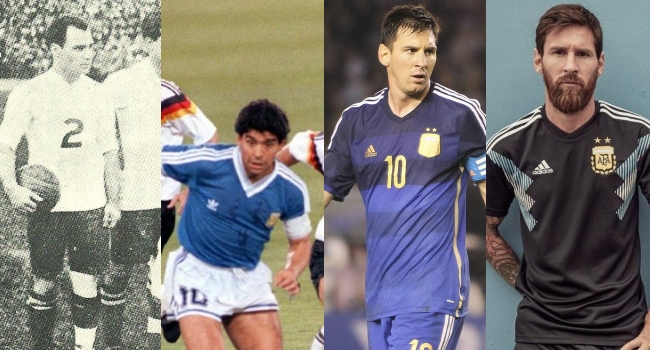 Cabe recordar que en distintos modelos y tonalidades, la camiseta alternativa de la Selección fue en casi todas las citas mundialistas de color azul oscuro, exceptuando solamente en 1980 y 1958 con un llamativo color amarillo por ocasiones excepcionales*, además del blanco empleado en sus inicios, entre 1902 y 1908.