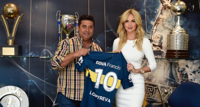 Mientras aprovecha al máximo de su estadía en la Argentina, Victoria Lopyreva, una de las representantes de la próxima cita mundialista acudió a La Bombonera en compañía del presidente de la AFA y el de Boca, Claudio Tapia y Daniel Angelici respectivamente.