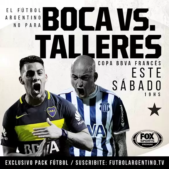 FOX Sports Premium transmitirá para todo el país el amistoso entre Boca y Talleres en la provincia de Córdoba el sábado 19 de mayo a las 19hs. El encuentro, que pone en juego la Copa BBVA Francés, será transmitido en exclusiva para los suscriptores del Pack Fútbol.