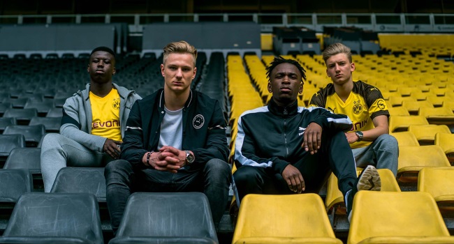 Con el Signal Iduna Park como escenario de fondo, jugadores de la talla de Julian Weigl y Marco Reus posaron con la nueva indumentaria y algunos accesorios correspondientes a la nueva línea de la marca, todo bajo los hashtags de #NewLevels y #ThePulseOfDortmund.
