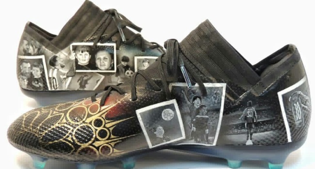 Pintados a mano sobre el modelo actual con el que juega el argentino, los botines muestran fotografías que reflejan la infancia, crecimiento y desarrollo mediante algunas postales sin dejr de lado el template de la marca ni los nombres de su mujer y dos hijos: Antonela, Thiago y Mateo respectivamente.