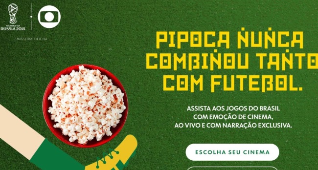 Globo decidió transmitir los partidos de la “Verdeamarela” en más de 280 cines de todo el país. El proyecto “Copa en el cine” tendrá su inauguración el próximo domingo 17 de junio, cuando las Selecciones de Brasil y Suiza comiencen a disputar la primera fecha del Grupo E en la ciudad de Rostov-On-Don.