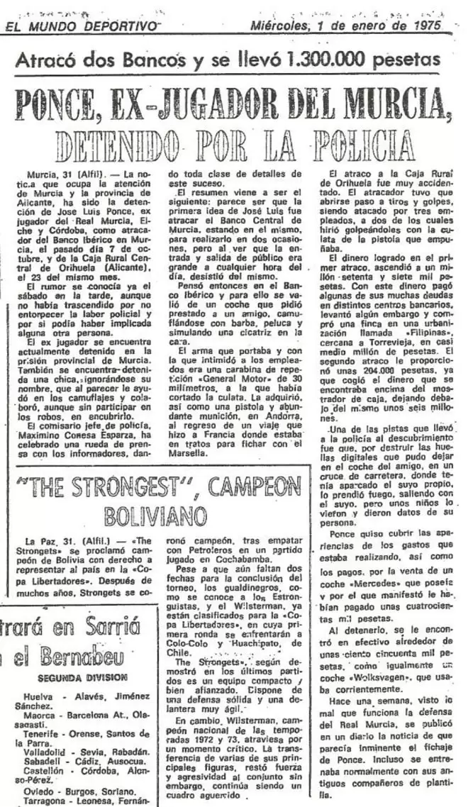 Y es que, mientras Ponce se desempeñaba como jugador del Murcia en una etapa de madurez deportiva en su carrera, sus adicciones y ambición lo terminaron conduciendo a dar el primer golpe en octubre de 1974, nada más y nada menos que al Banco Ibérico de Murcia.